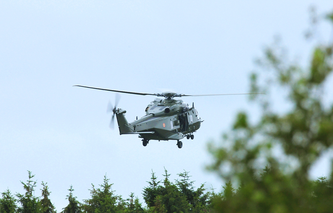 Twee Agusta A109BA helikopters van de Belgische luchtmacht vlogen vanmiddag over het grensgebied met Nederland en België nabij het Reuselse Beleven.