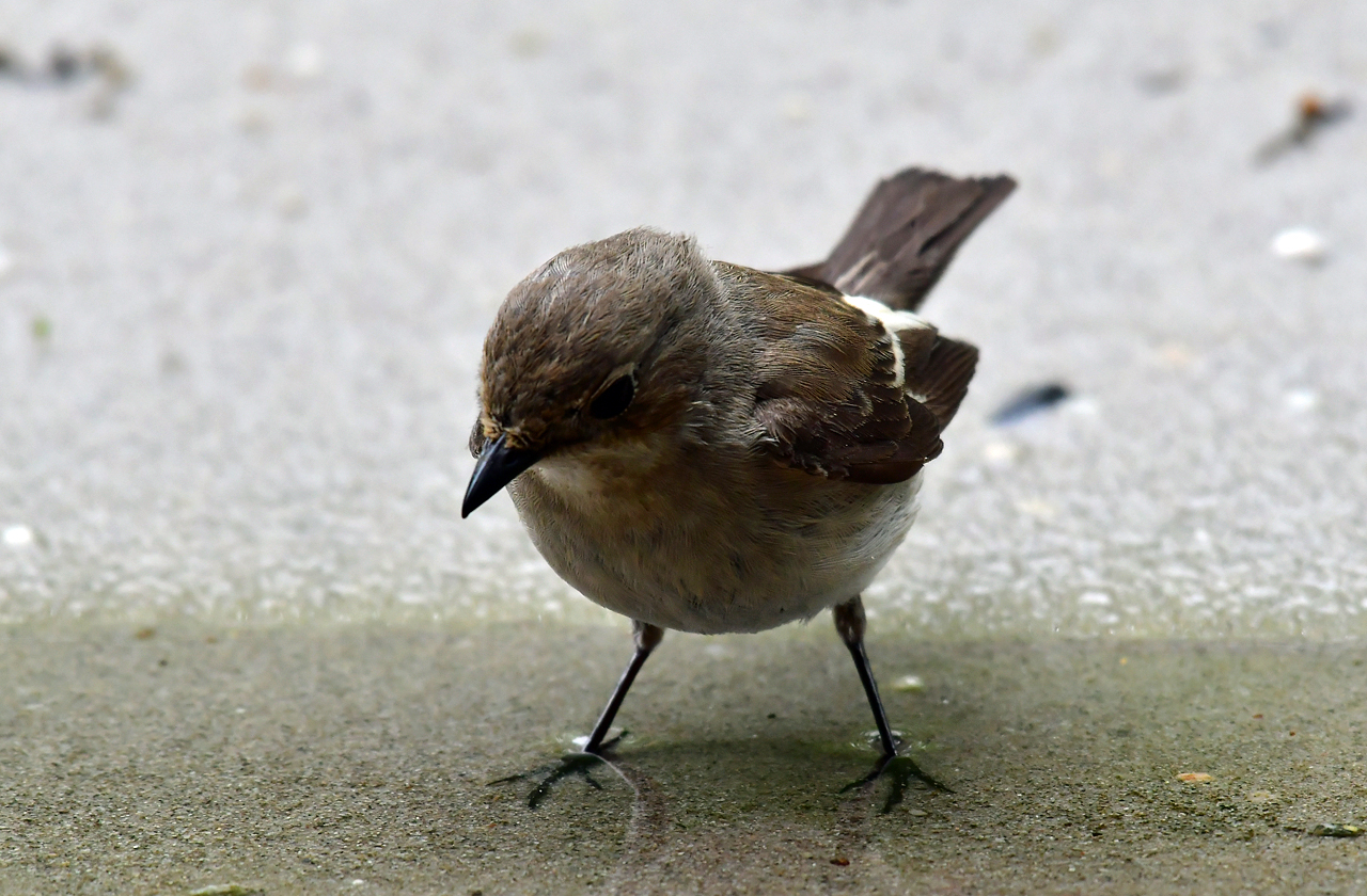 De Bonte vliegenvanger met zijn pootjes in het water.