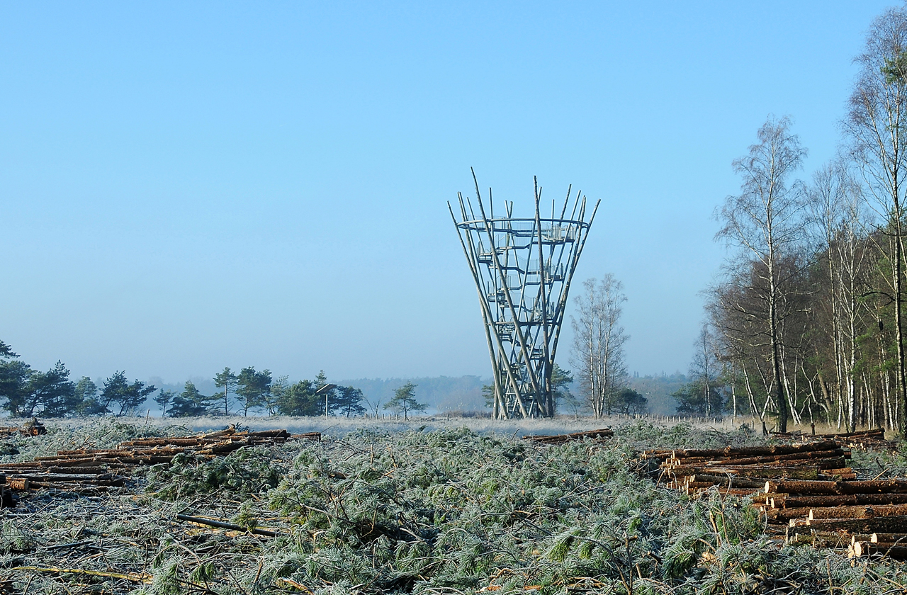 Op 11 november 2011 is de uitkijktoren D’n Flaestoren geopend, naar een ontwerp van LuijtenISmeuldersIArchitecten uit Tilburg. Door 8 bomen van het landgoed zelf, elk zo’n 25 meter lang en 3000 kg zwaar, te combineren met slanke stalen kolommen is een open structuur gecreëerd waarin, door een afwisseling van trappen en bordessen, een makkelijk te belopen route naar het uitzichtbalkon op 22 m hoogte leidt. Vandaar en vanaf elke traptrede er naar toe, heb je een prachtig uitzicht over het niet toegankelijke deel van het natuurgebied De Flaes en het Goorven en de bossen er rondom heen.