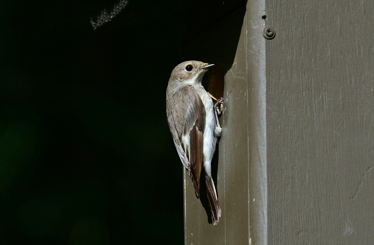 Vanmorgen ben ik even post gaan vatten bij de Bonte vliegenvanger die in een nestkast woont in de tuin bij onze schuur. Het vrouwtje vliegt rond het half uur van het nest, om een poosje alter terug te komen om weer een half uur op het nest te zitten. Het mannetje is vaak in de buurt om bij onraad een eventuele bedreiger te verjagen. Een enkele keer komen ze met een vliegje in de snavel terug bij het nest. Als dat bij elke vliegbeweging gaat gebeuren mogen we er van uit gaan de de jongen uit het ei zijn gekomen, wat de komende dagen het geval kan zijn.